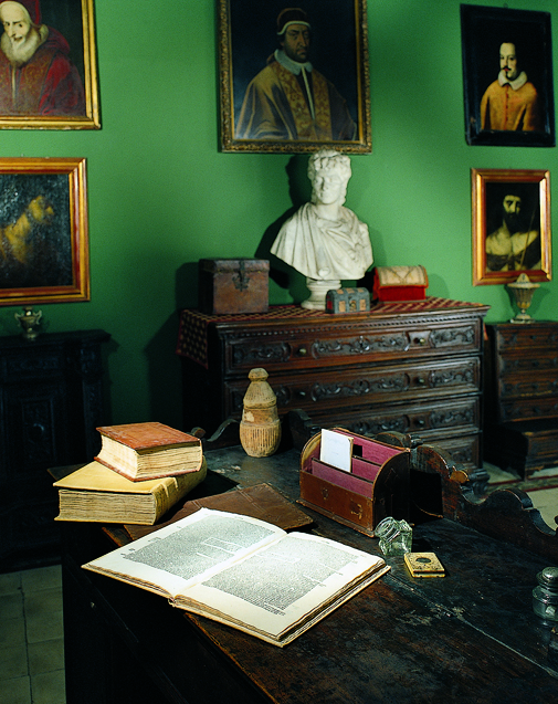 Das Gästezimmer ist besonders wichtig. Hier steht ein Bücherregal aus dem achtzehnten Jahrhundert, in dem die 404 Inkunabeln der Bibliothek aufbewahrt werden.Inkunabeln sind die ersten mit beweglichen Lettern gedruckt Bücher seit der Erfindung Gutenbergs bis Ende des fünfzehnten Jahrhunderts. Am meisten interessiert sich Ugo Da Como für die Inkunabeln über Brescia oder solche in Brescia gedruckt worden waren.