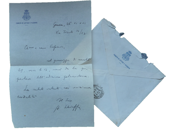 Lettera con busta del professor Alfredo Schiaffini (Genova, giugno 1916)