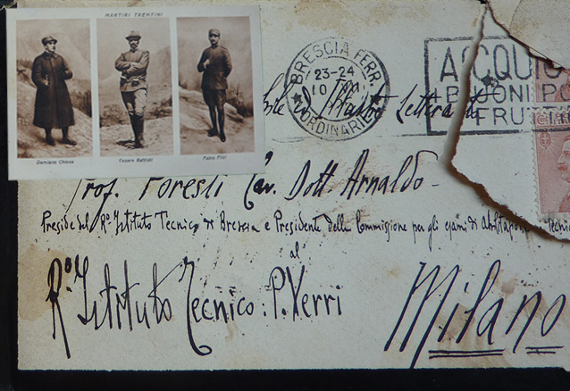 Busta con cartolina illustrata dei martiri trentini ricevute da Guglielmo Castagna