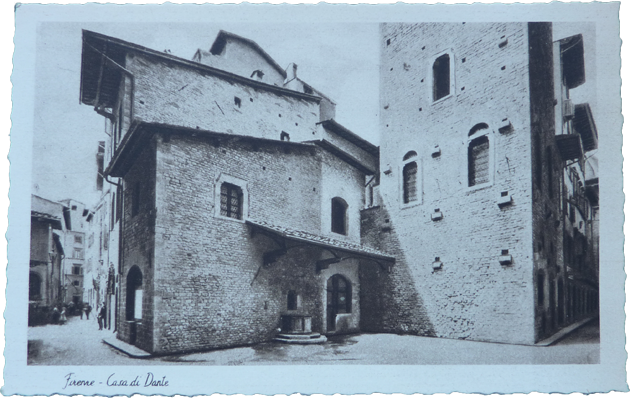 Cartolina con illustrazione della casa di Dante a Firenze