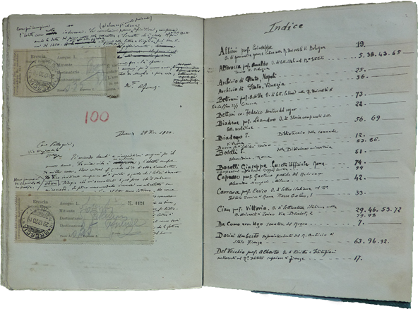 Prima parte dell'indice del minutario del 1920