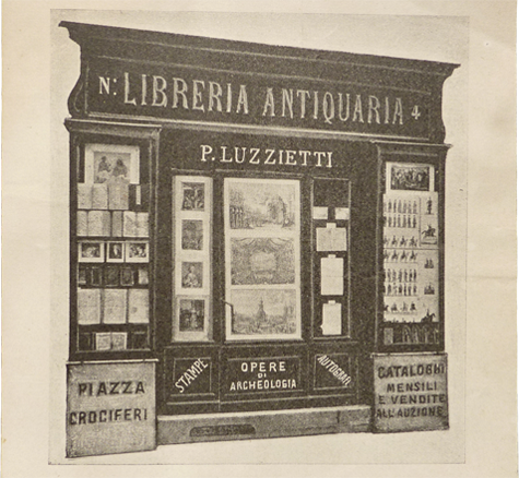 Illustrazione dell'esterno della libreria antiquaria Luzzietti