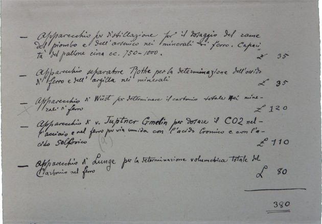Elenco materiale da acquistare per il laboratorio di metallurgia con relativo costo