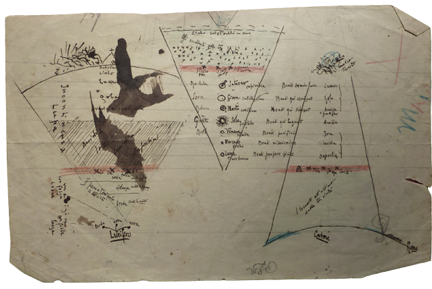 Schizzo dei tre regni della Divina Commedia dantesca