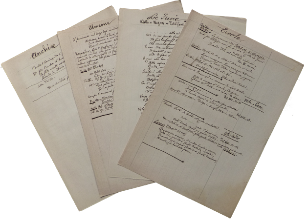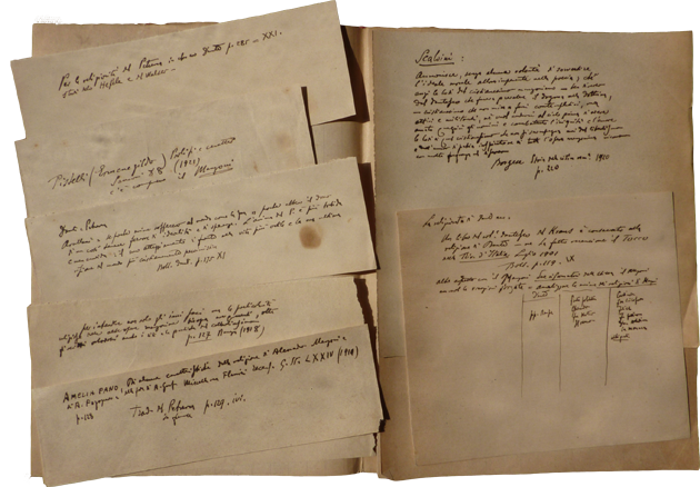 Gli studi sulla Commedia dantesca lo conducono al tema della mitologia classica e romana in cui si addentra stilando elenchi e descrizioni delle principali figure. Molti altri sono gli argomenti che lo attraggono, un fascicolo dal titolo Spigolature foscoliane racchiude annotazioni sull’ode a Luigia Pallavicini e osservazioni su una lettera del poeta. Da Foscolo si passa ai Promessi sposi di Manzoni e a Tasso con qualche nota sul testo dell’Aminta, la descrizione del prologo e la collazione di due manoscritti.