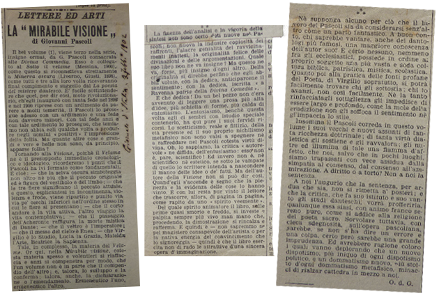 Recensione al libro "La mirabile visione" di Pascoli, ritagliata dal Giornale d'Italia del 3 febbraio 1902