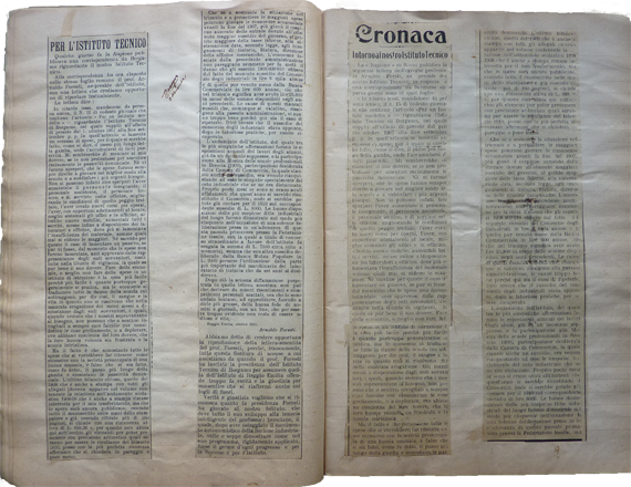 Quaderno con articoli di giornale sull'insegnamento tecnico-professionale