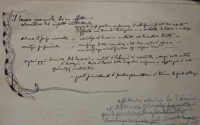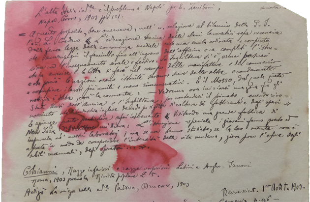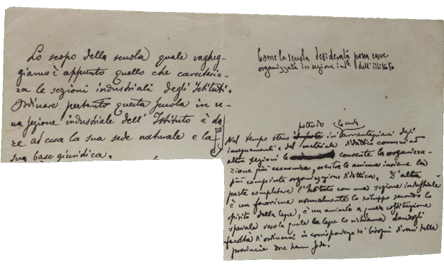 Bozze manoscritte per un testo sul rapporto tra istituti tecnici e industrie stampato nel 1904