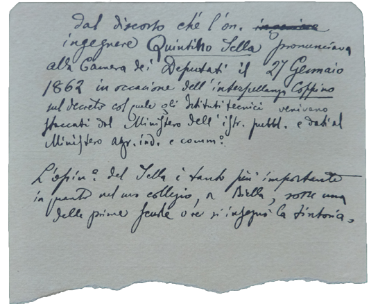 Brevi note sul discorso pronunciato dal deputato Quintino Sella in occasione dell'interpellanza sugli istituti tecnici