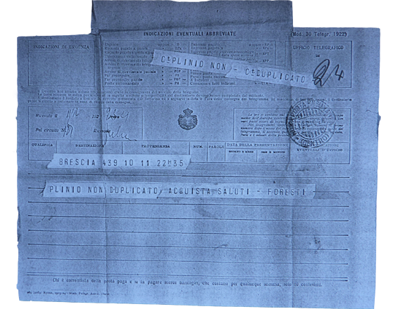 Copia di un telegramma ricevuto nel 1924, oggi conservato nell'archivio di Ugo da Como